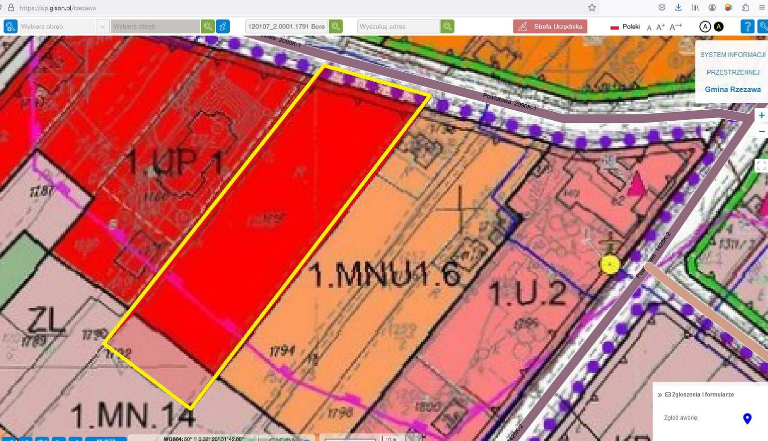 Przeznaczenie: Usługi publiczne z dopuszczeniem usług komercyjnych z zakresu handu i gastronomii oraz funkcji mieszkaniowej.